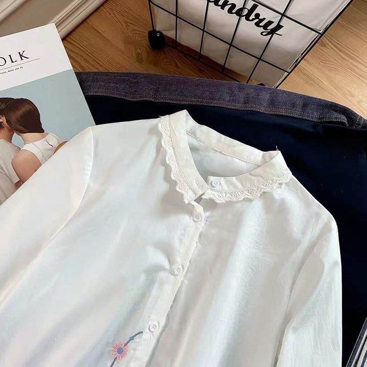 Kemeja Putih Motif Bordir Kalila Top Baju Atasan Wanita Fashion Muslim Kekinian Korean Style Lengan Panjang Murah Modern