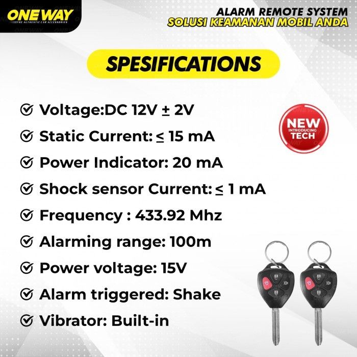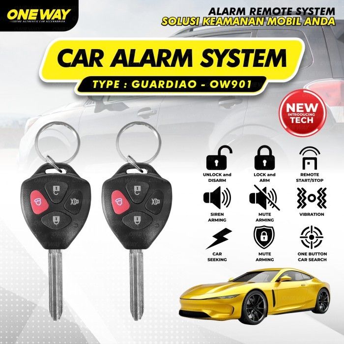 Alarm Mobil Original OneWay Alarm Mobil Remote System Tipe Guardio OW901 Set Lengkap Universal Car