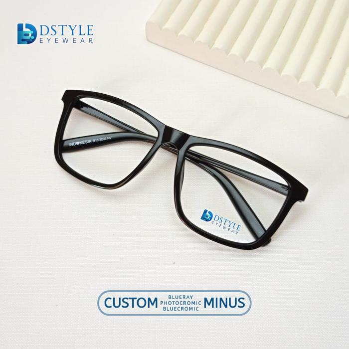 Kacamata Minus Photocromic Pria Kotak Terbaru Laki-laki Custom Lensa Biru Blue Biru Blue Bluecromic