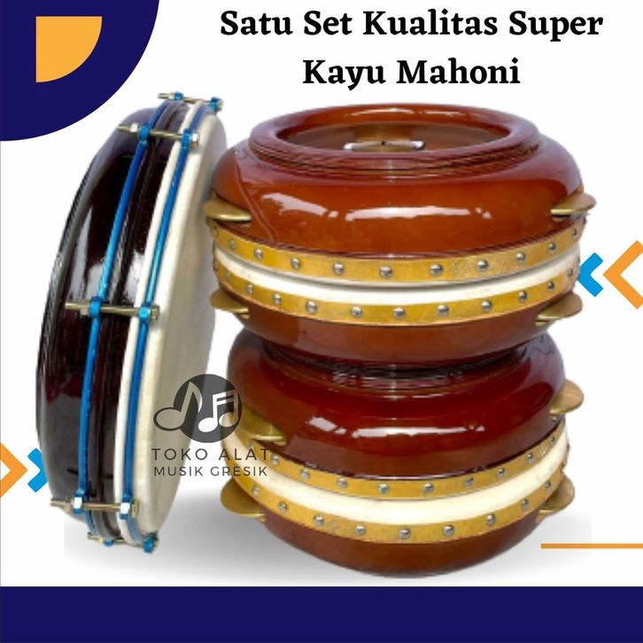 Rebana Hadroh Kualitas Super Kayu Mahoni Satu Set Bas