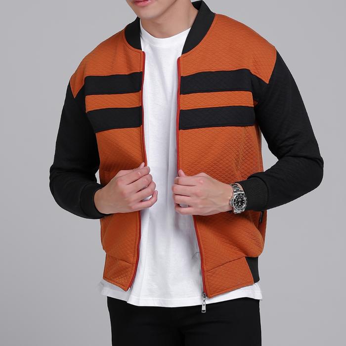 Jaket Comfy Pria /Kain Diamon Lembut Nyaman / Jacket Basebal Setrip Diamond Kain Sweater Slim Fit