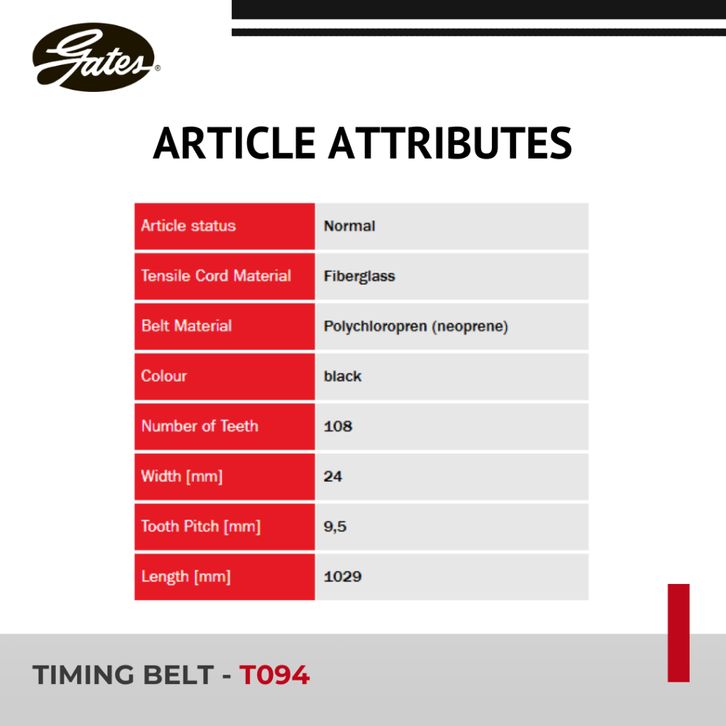 Gates Timing Belt Prestige / Timing Belt T094 Neoprene