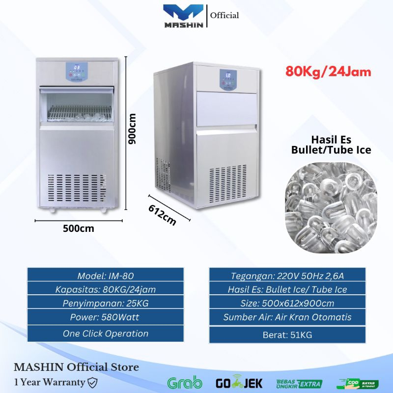 Mashin - Ice Tube Maker Bullet Ice Machine 50-120Kg/Hari Mesin Pembuat Es Batu Bulat Kristal