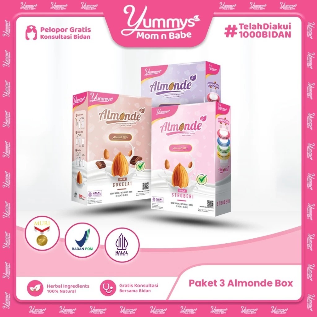 ♥️ Blowrain.id ♥️ Paket 3 BOX ALMONDE - Susu Program Pasutri -TM2 | YUMMYS Susu Almond Ibu Hamil - Mengurangi Mual | Yum