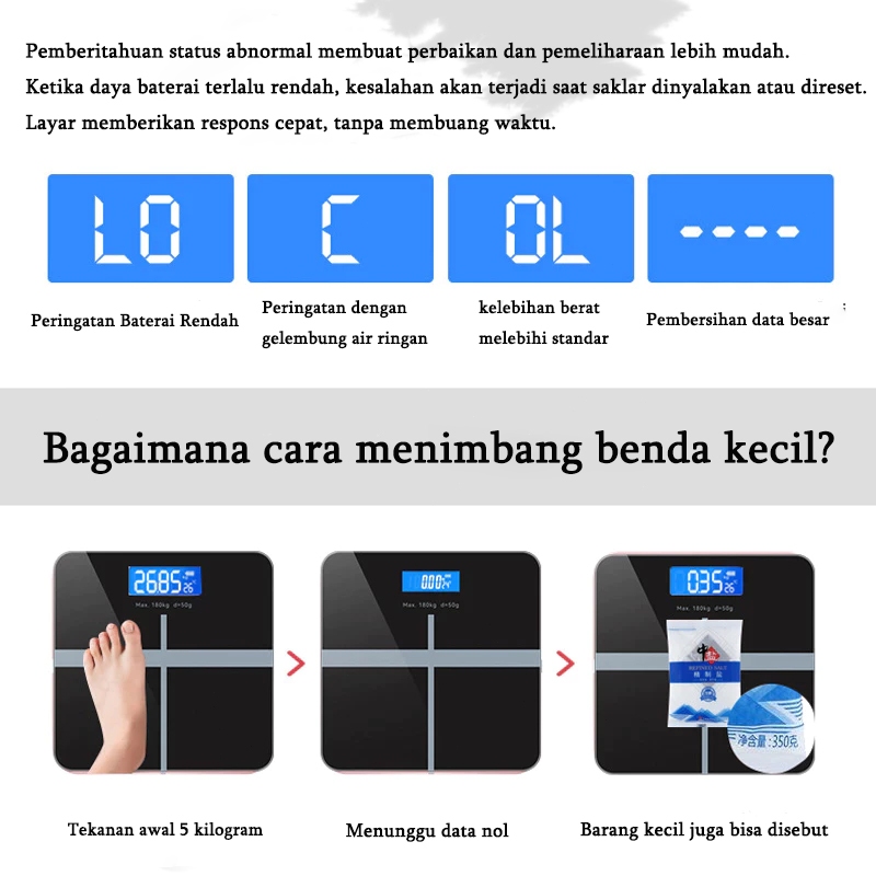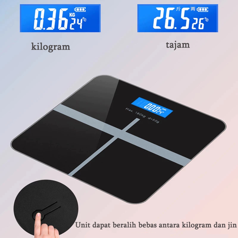 Best Selling Timbangan Badan Digital 180 KG USB Charging Anti Pecah Layar LCD 26x26cm Smart Scale
