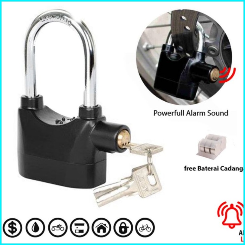 Gembok Alarm Anti Maling Ring Panjang Gembok Anti Pencuri Pengaman Motor Alarm
