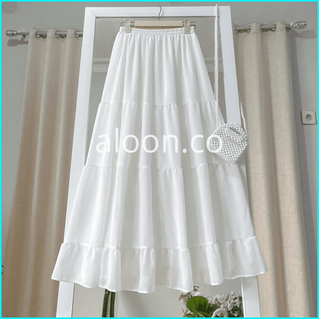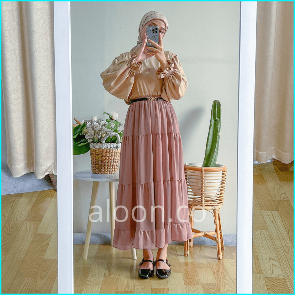 Serena Rok Midi Rempel Ceruty Babydoll Premium Rok Susun Ruffle Midi Skirt Panjang