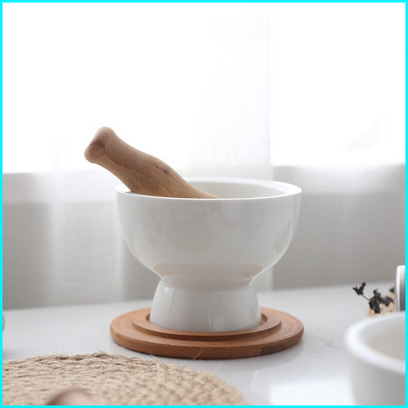 Ms Lesung Keramik Ulekan Penggiling Cabe Merica Dengan Tatakan Kayu