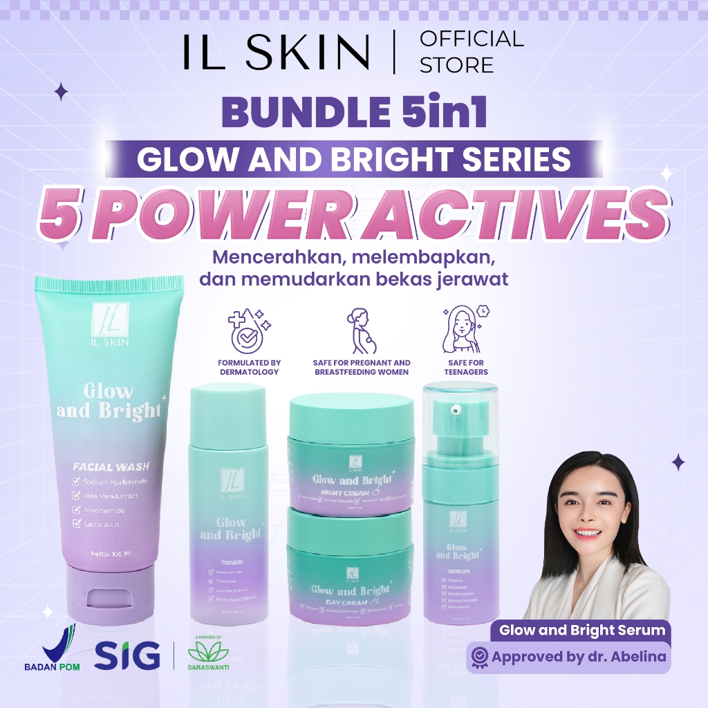 [Mall] SKINCARE IL SKIN Package 5in1 Glow and Bright Series - Facial Wash, Toner, Serum, Day & Night Cream