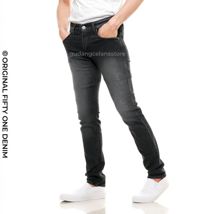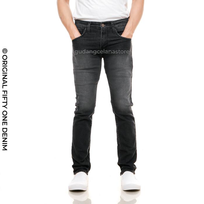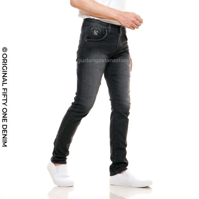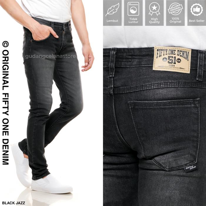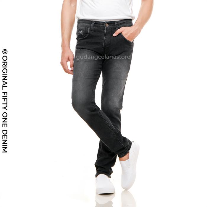 FIFTY ONE DENIM - Celana Jeans Pria Panjang Slim Fit Stretch Black Jazz Premium New Original Distro