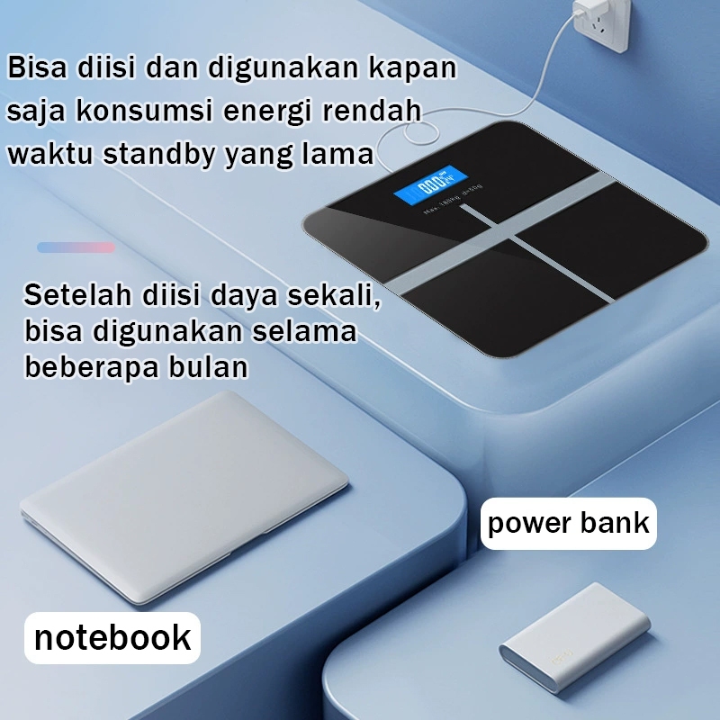 [Best selling]Timbangan Badan Garis Motif Timbangan Badan Digital 180 KG USB Charging Anti Pecah Layar LCD 26X26cm