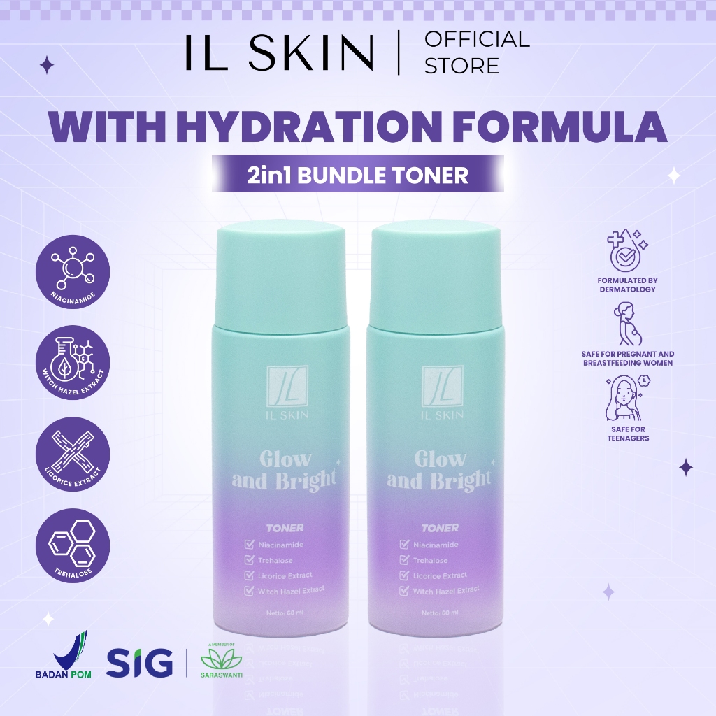 [Mall] SKINCARE IL SKIN Glow and Bright Bundling 2 Pcs Toner 60ml - Hydrating Toner Mencerahkan Wajah