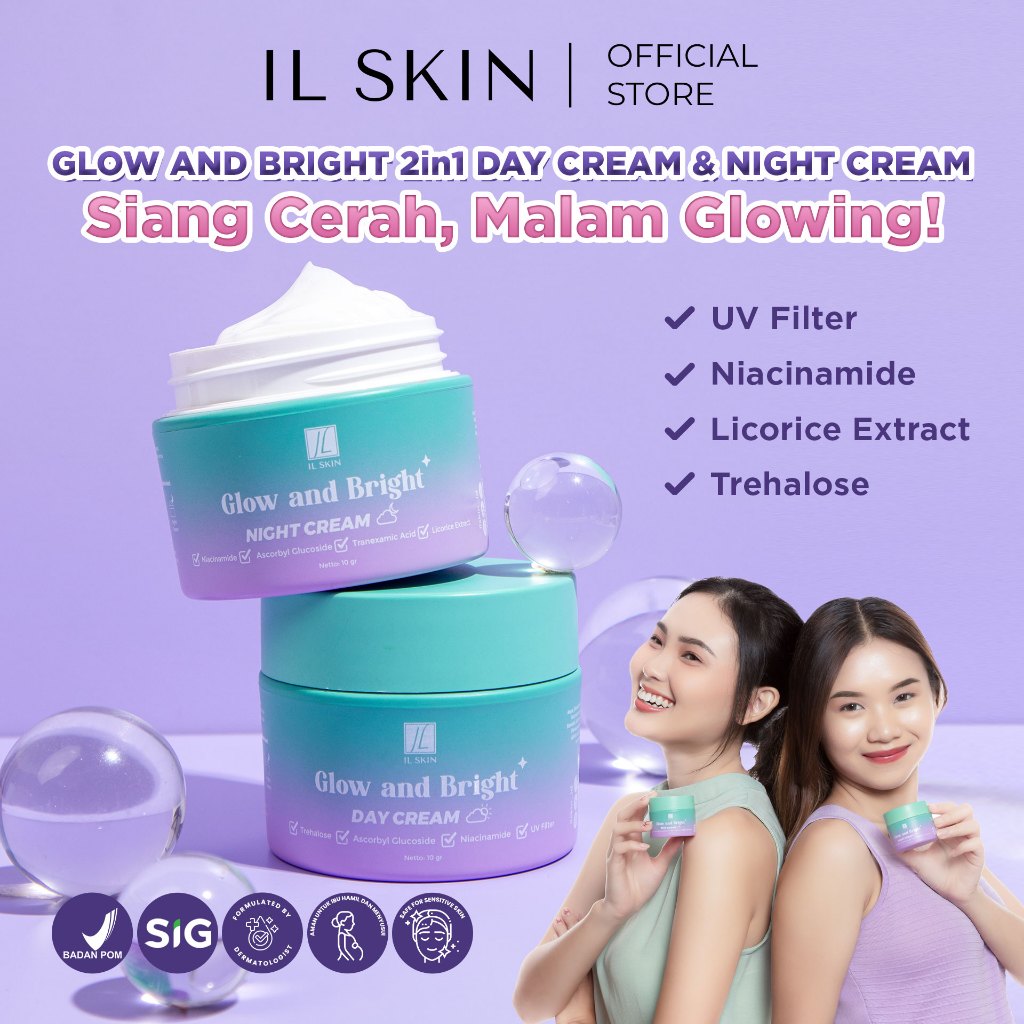[Mall] SKINCARE IL Skin Glow and Bright 2in1 Day Cream&Night Cream 10gr Bundling Skincare Perlindungan Kulit Wajah Cerah