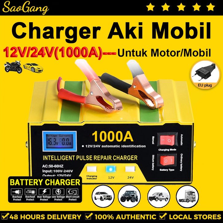 Cas Aki Mobil Original Charger Aki Mobil Motor 12V/24V 1000A Charger Aki Otomatis/ Aki Charger / Alat Case Aki Mobil /