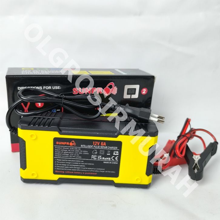 Inverter Mobil Original Power Inverter Sunpro 12V 6A pengisi daya cerdas casan aki motor dan mobil SMART REPAIR CHARGER