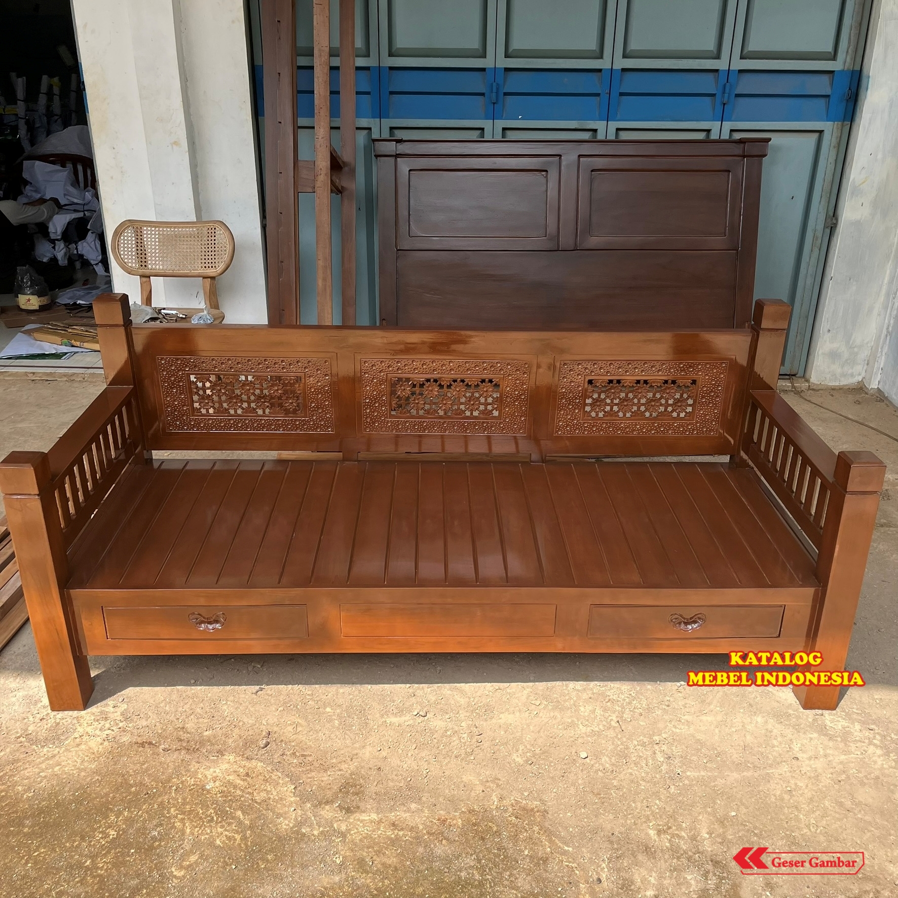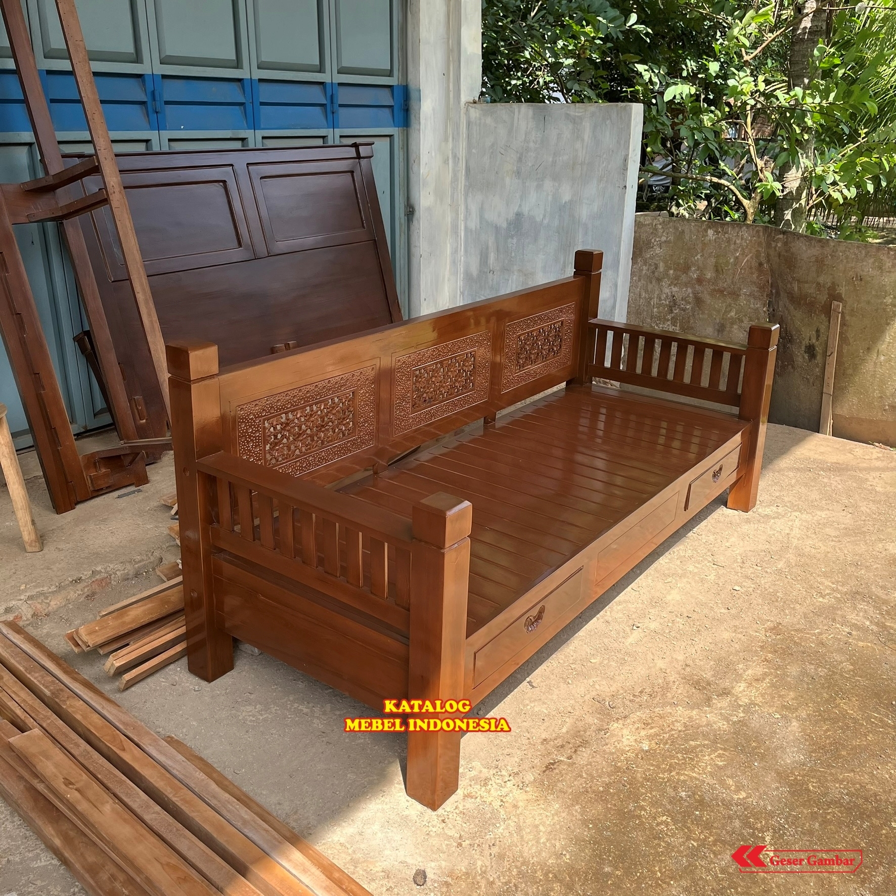 Bangku Kursi Bale-Bale Sofa Bed Minimalis Ukiran Seribu Bunga