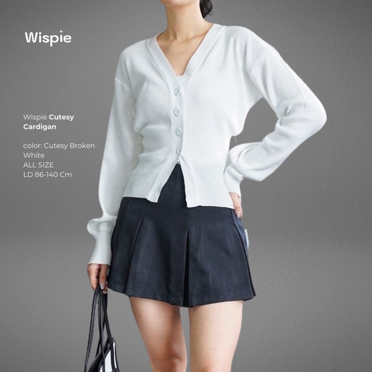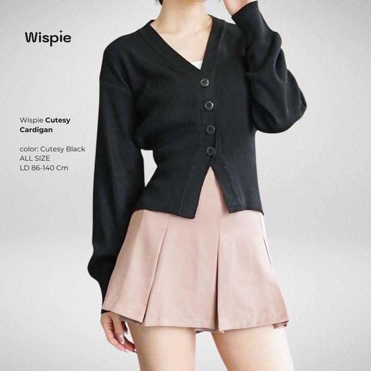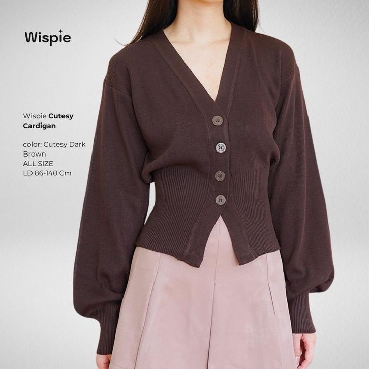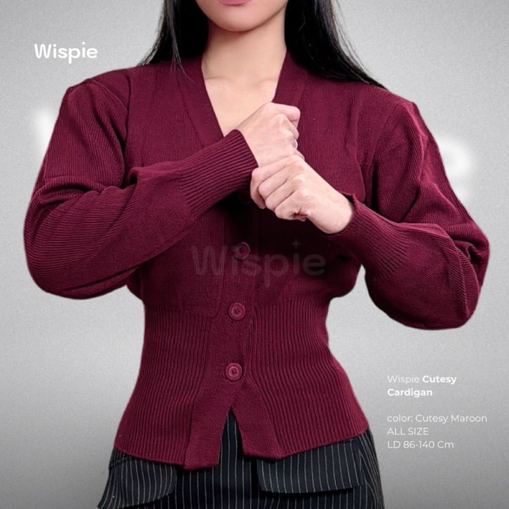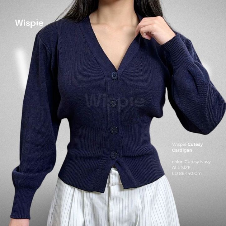 Wispie Cutesy Fitted Cardigan | Atasan Rajut Wanita Vneck Knitwear Sweater Outer Luaran