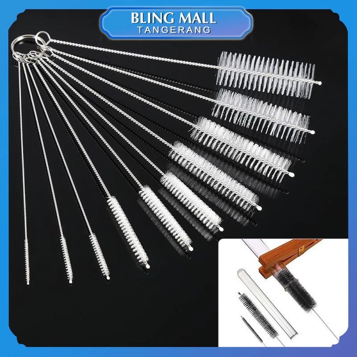 10 Pcs Sikat Tabung Reaksi Bahan Nilon Set Sikat Pembersih Sedotan Warna Putih Multifungsi