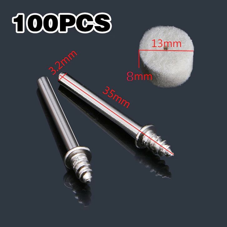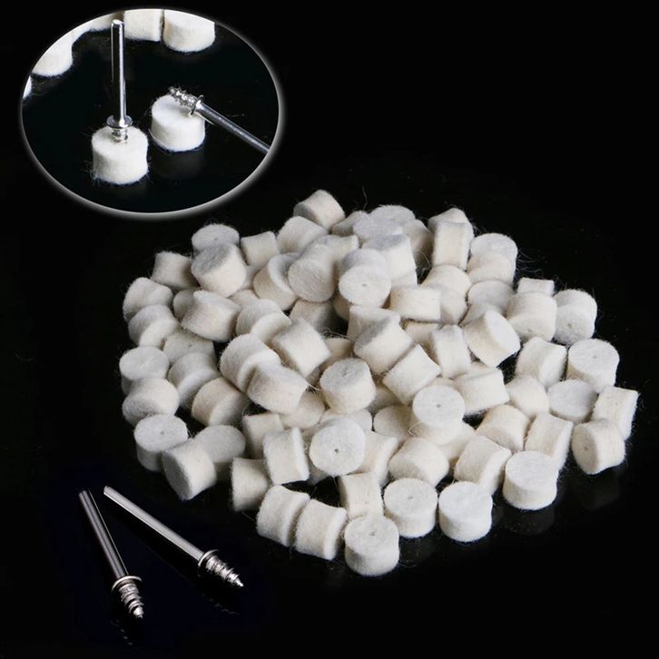 100Pcs Wool Felt Polishing Buffing Pad 13mm + 2 Shank For Grinding Wheel