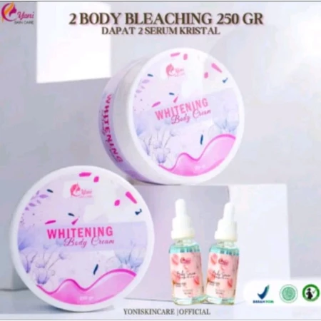 PAKET ISI 4 PCS BODYWASH, ISI 3 BODY LOTION WHITENING YONISKINCARE 300ML, 4 PCS (2BLEACHING 250g + 2 SERUM KRISTAL), TONER WAJAH YONISKINCARE