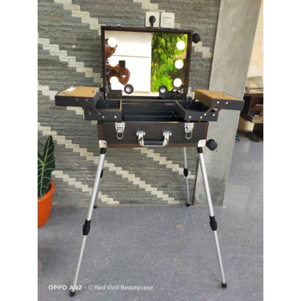 Beauty Case Makeup beautycase koper make up beautycase tas cosmetic koper makeup lampu 6 otomatis 3 warna kaki 4