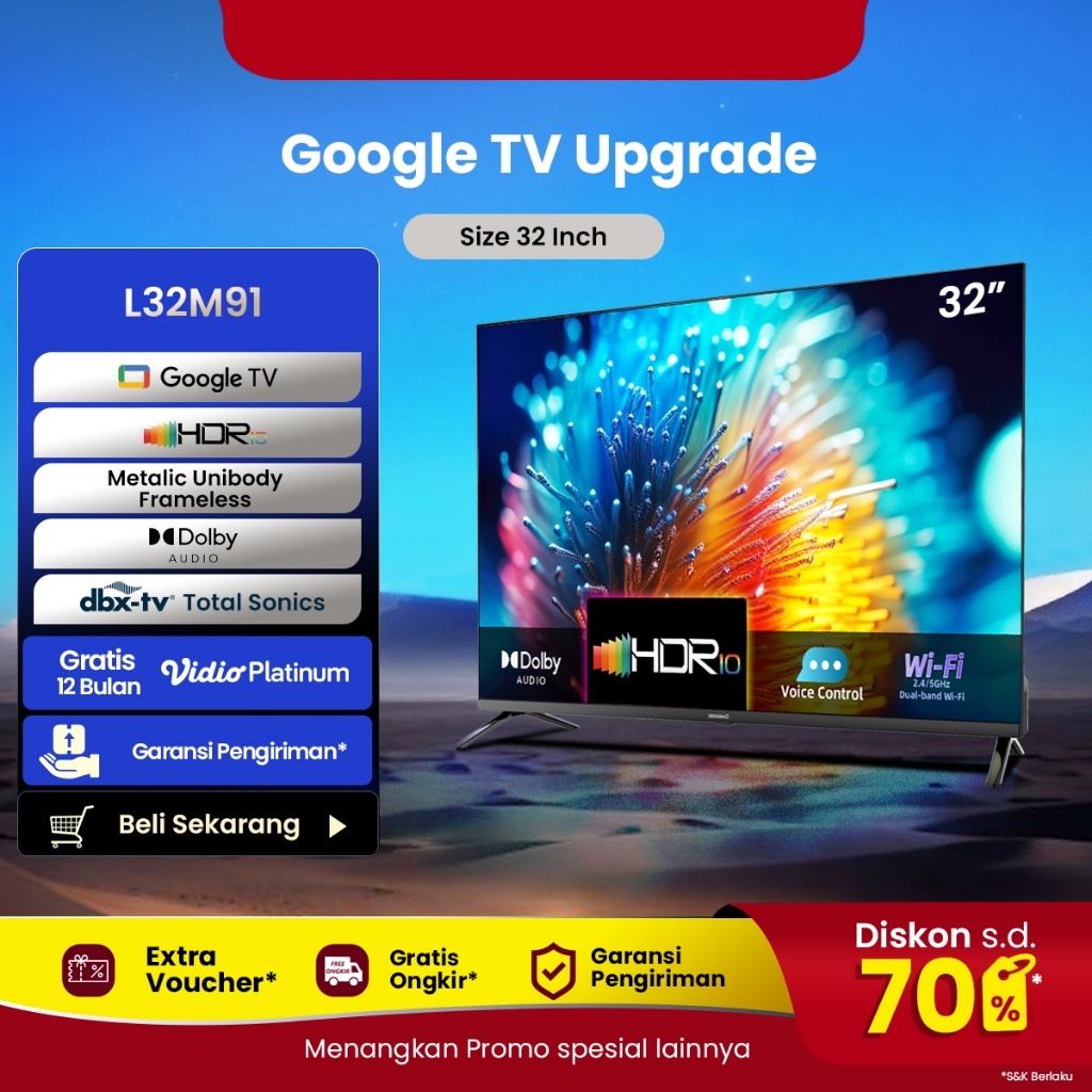 [Mall] TV 32 inch HD Dolby Audio Google Play Netflix Youtube Bluetooth USB Google Assistant Smart TV Digital Free Vidio