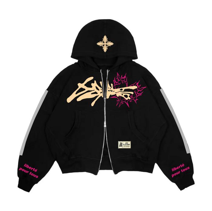 JDMCO - Zipper Boxy Hoodie Sablon Puff Ink + Sablon Reflective Menyala Sherpa Double Kepala Zipper