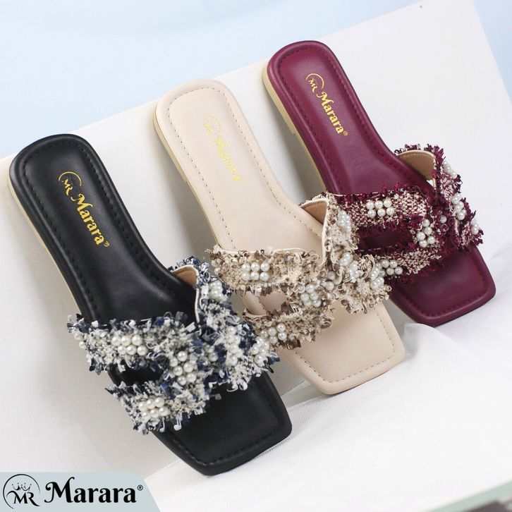 Marara - Sandal Wanita Selop Teplek Belia - Krem