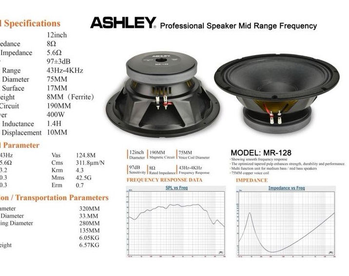 SPEAKER KOMPONEN 12 INCH ASHLEY MR128 | MR 128 ORIGINAL