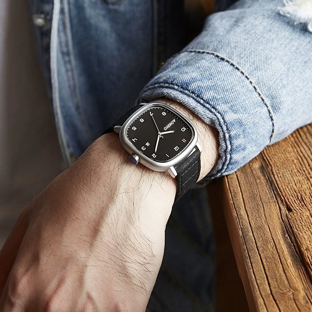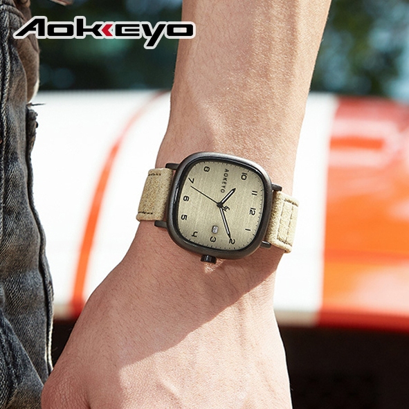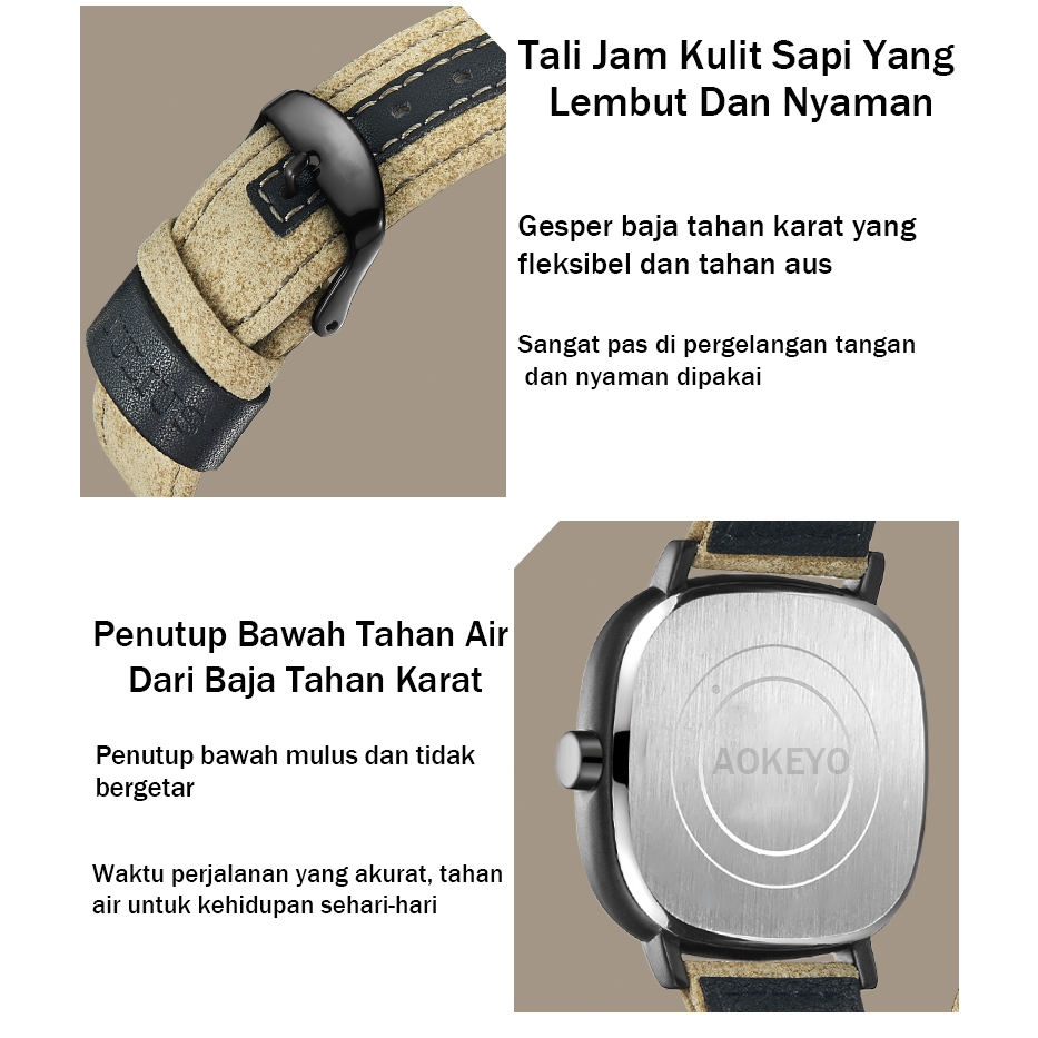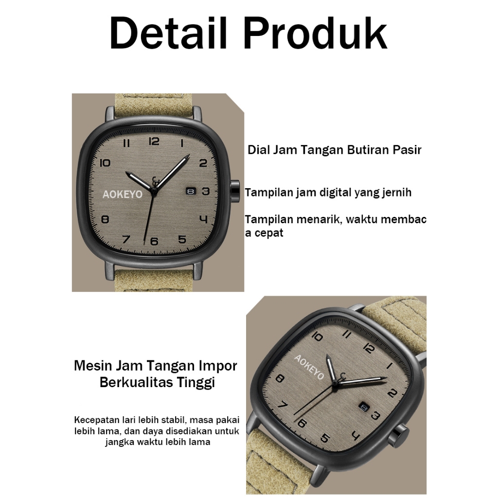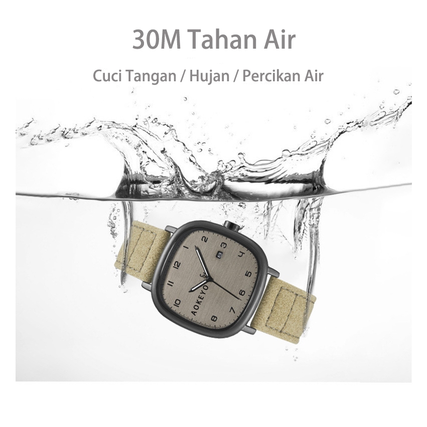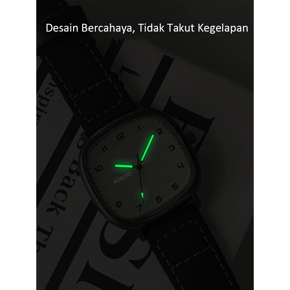 AOKEYO F043 Jam Tangan Pria Kulit Anti Air Original Terbaru Casual Tahan Air Square Leather Jam Tangan Cowok(Free BOX +