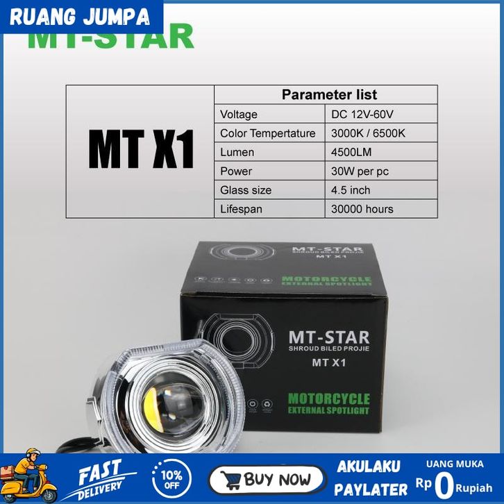 【MT STAR】 Lampu Utama MT X1 Projie Biled/ Biled Ala Ala Cut Off 4.5INC D2 D3 Jauh Dekat 30Watt plus devil