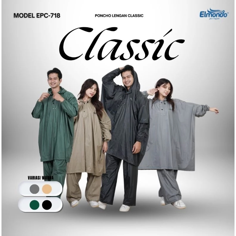 Jas Hujan Pria dan Wanita Ponco Celana Elmondo CLASSIC 718 - Mantel Stelan Poncho Lengan Dewasa