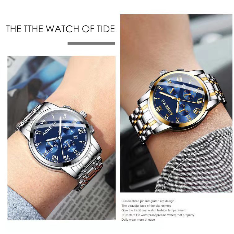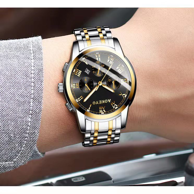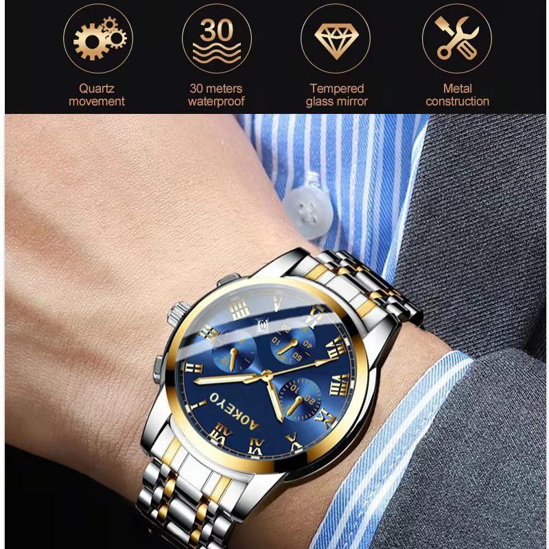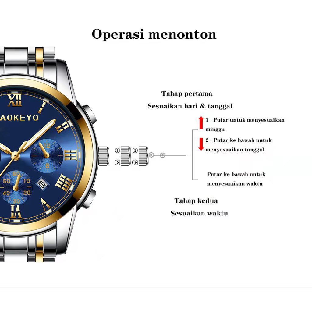 Aokeyo 4006 Jam Tangan Pria Anti Air Original Luxury Stainless Steel(Free BOX+Kartu)