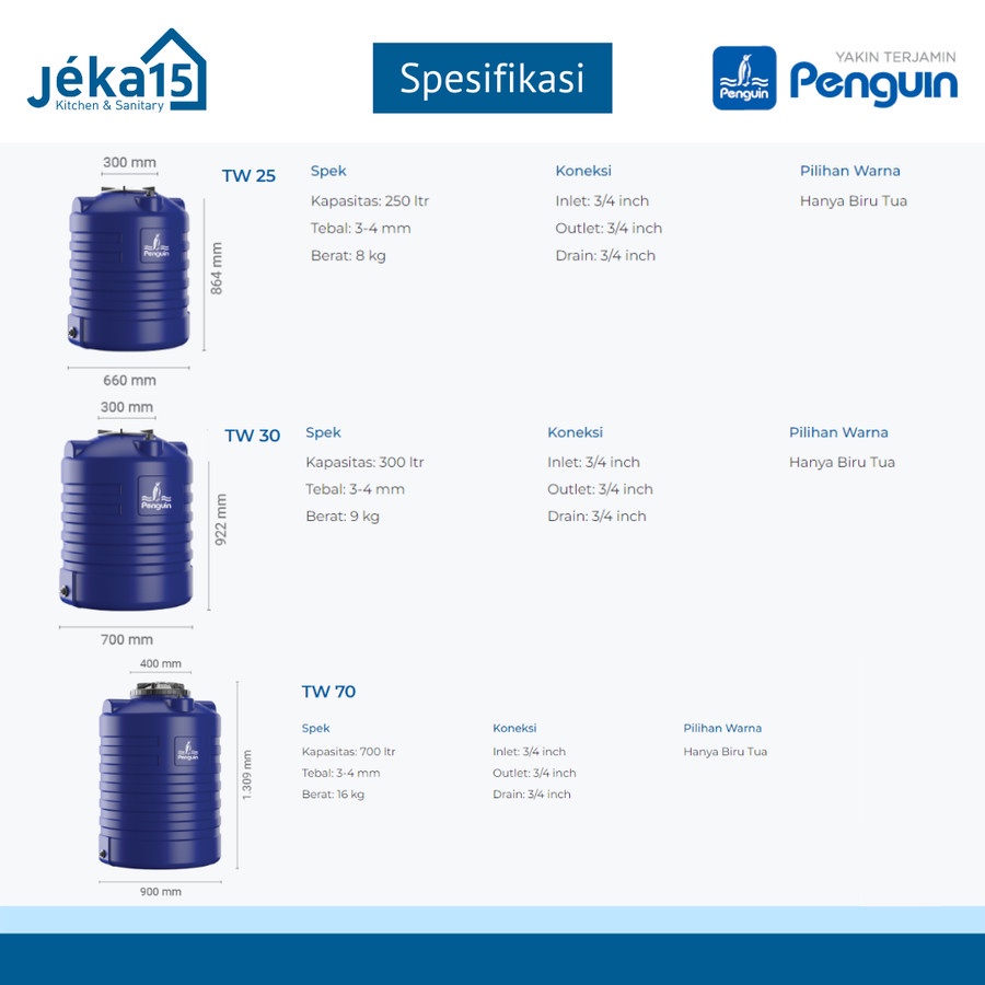 Tangki Air Tandon Toren PENGUIN TW 250 L - 1050 L Toren Air Penguin Tangki Air Anti Bocor Anti Bau