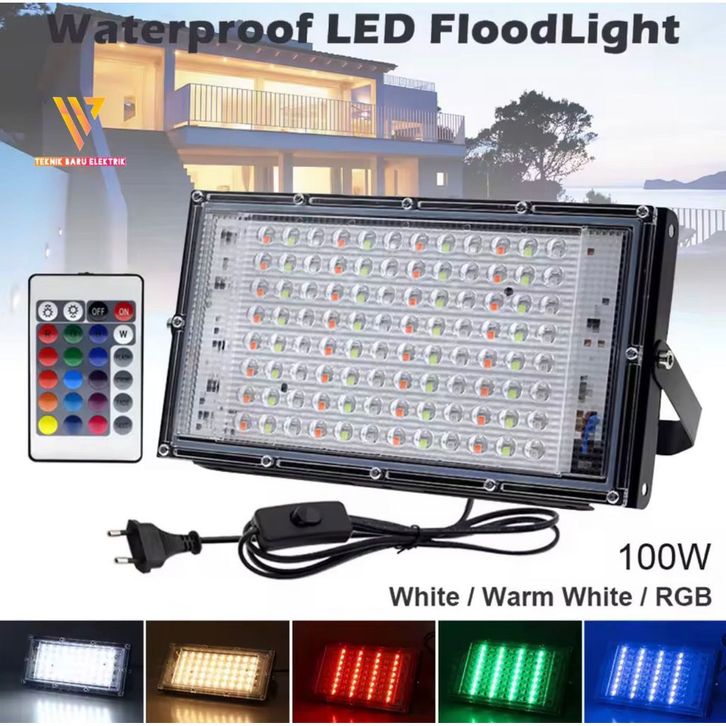 Lampu Sorot Outdoor 50LED 100LED LED RGB Warna Warni Putih Kuning 50W 100W Hemat Energi Tahan Cuaca Lampu Halaman Pagar