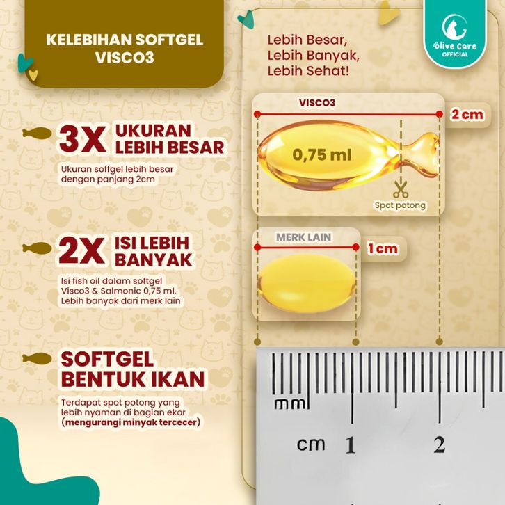 Vitamin minyak ikan kucing visco3 murni & alami non-gmo tinggi omega 3 omega 6 omega 9 OLIVE CARE