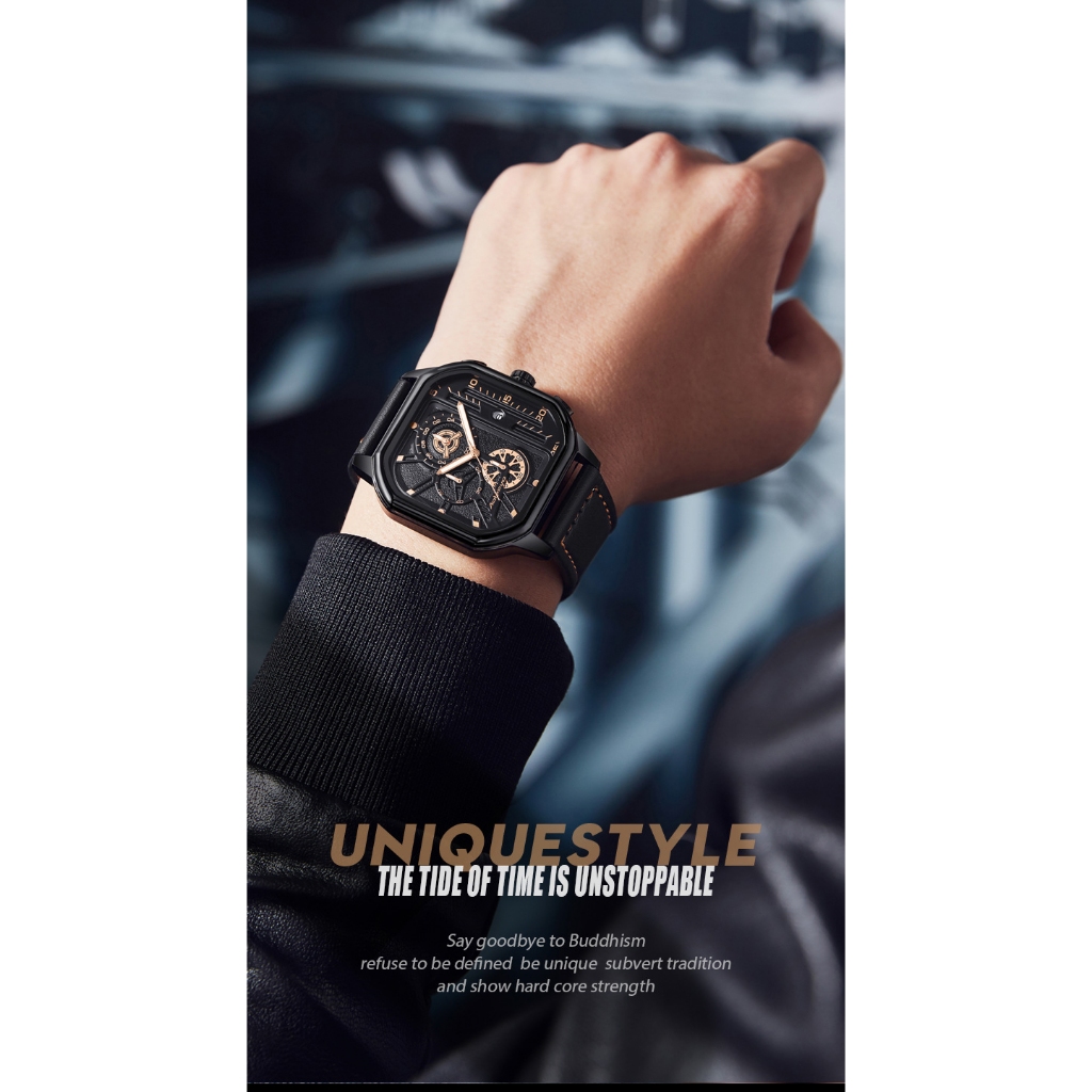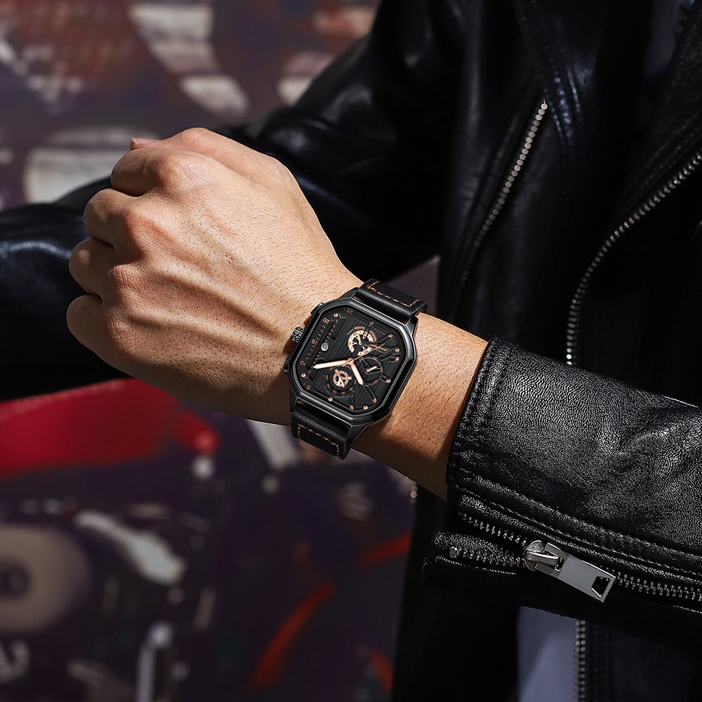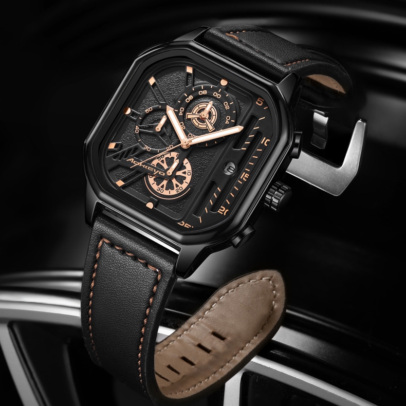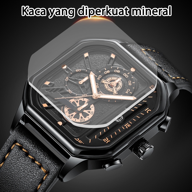AOKEYO S045 Jam Tangan Pria Kuarsa Olahraga Kasual Tali Kulit Pria Jam Tangan Cowok(Free BOX + Kartu Garansi)