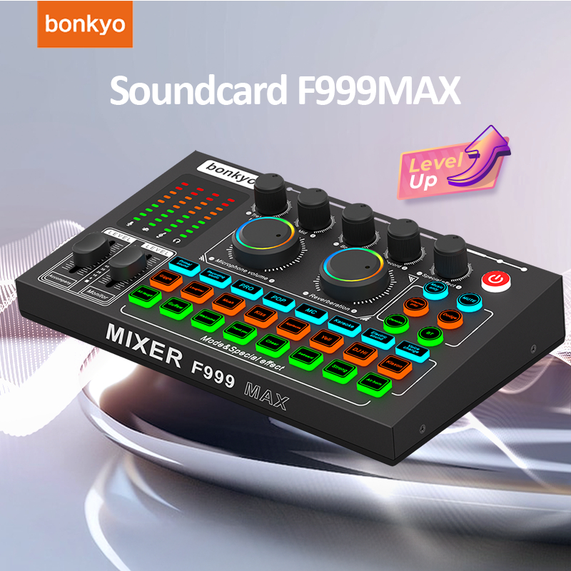 Bonkyo F999MAX Sound Card Bluetooth Live SoundCard F999MAX Soundcard Audio Live Mixer untuk Live streaming Karaoke
