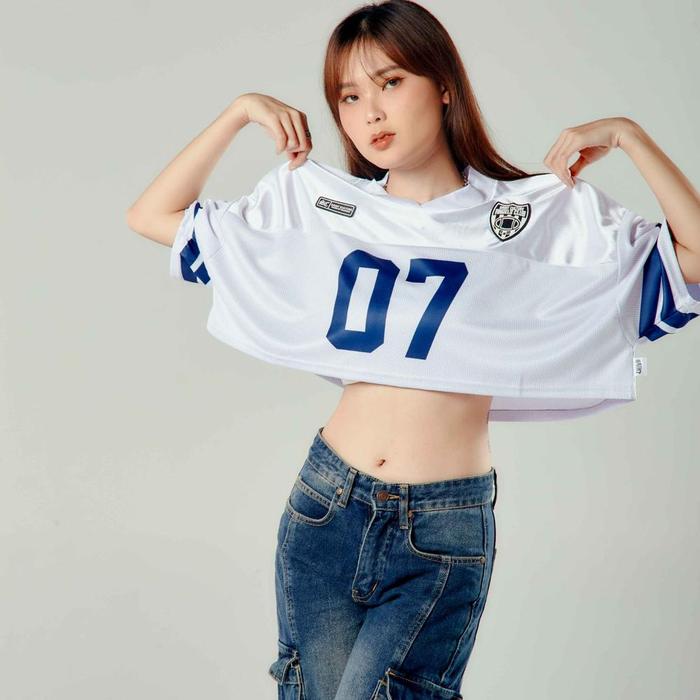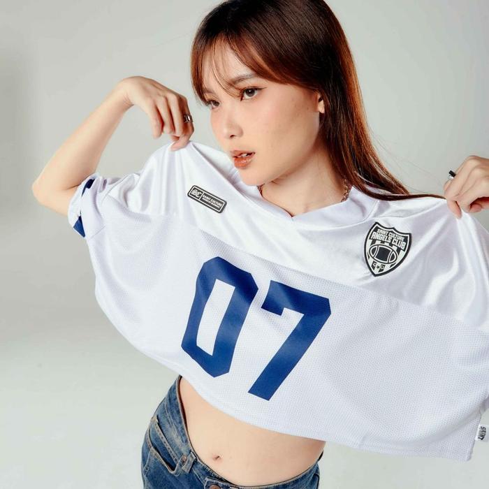 Saint Culture / Snowy Blue Crop Tee 07 / Croptop Baju Jersey Vintage Kaos Oversize Retro Rugby NFL
