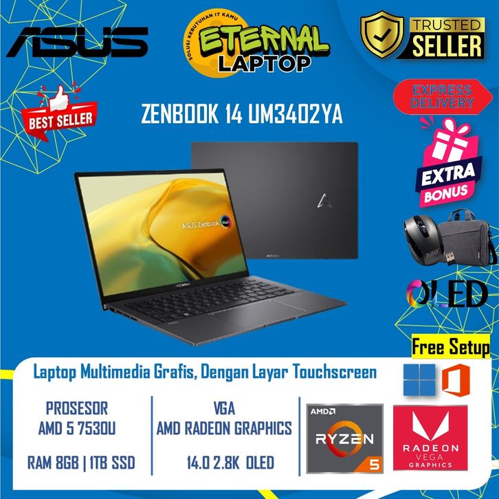Laptop Touchscreen Asus Zenbook UM3402YA Amd 5 7530U OLED Backlight Keyboard Windows Home