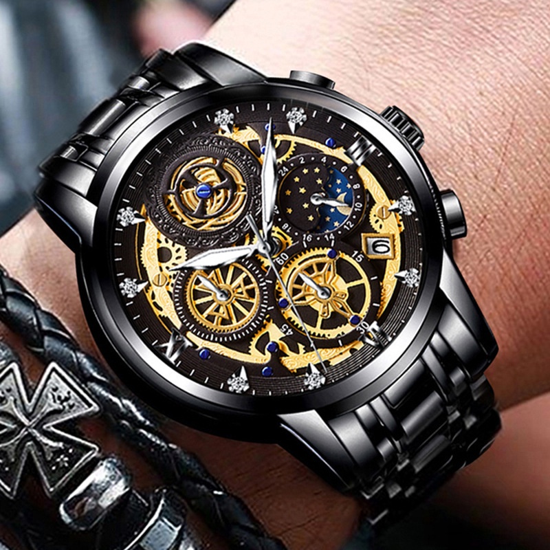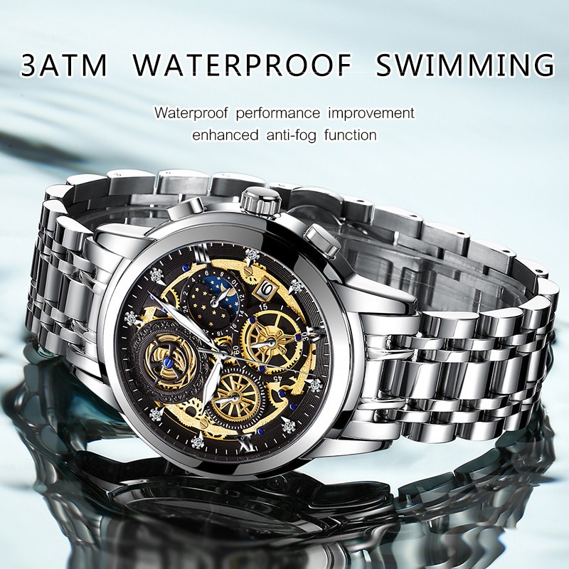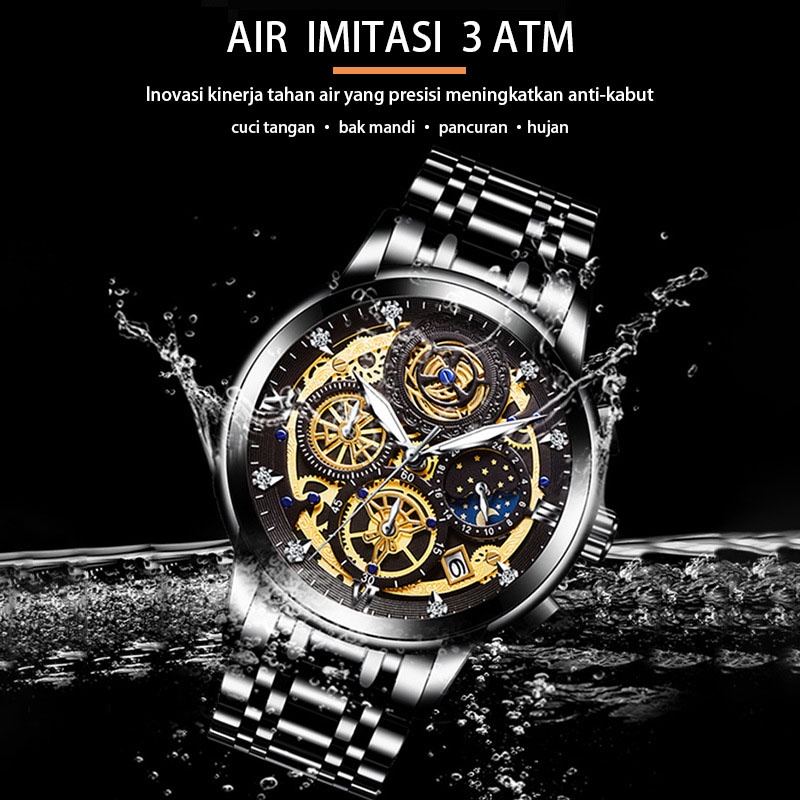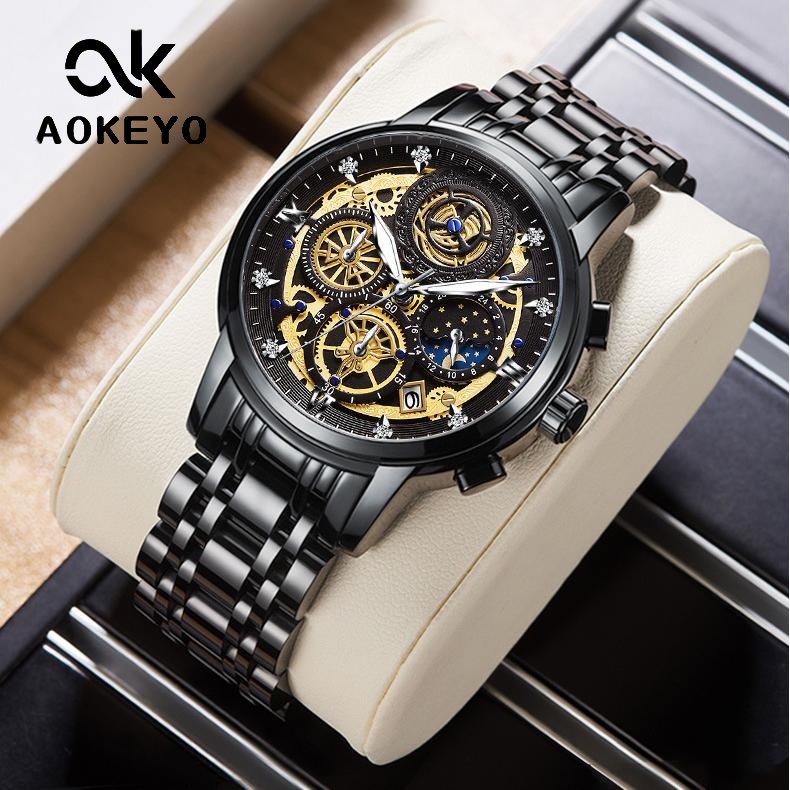 2022 AOKEYO 888 Jam Tangan Pria Anti Air Asli Luxury Bisnis Quartz Stainless Steel Watch Free BOX Free Kartu Garansi(Sem