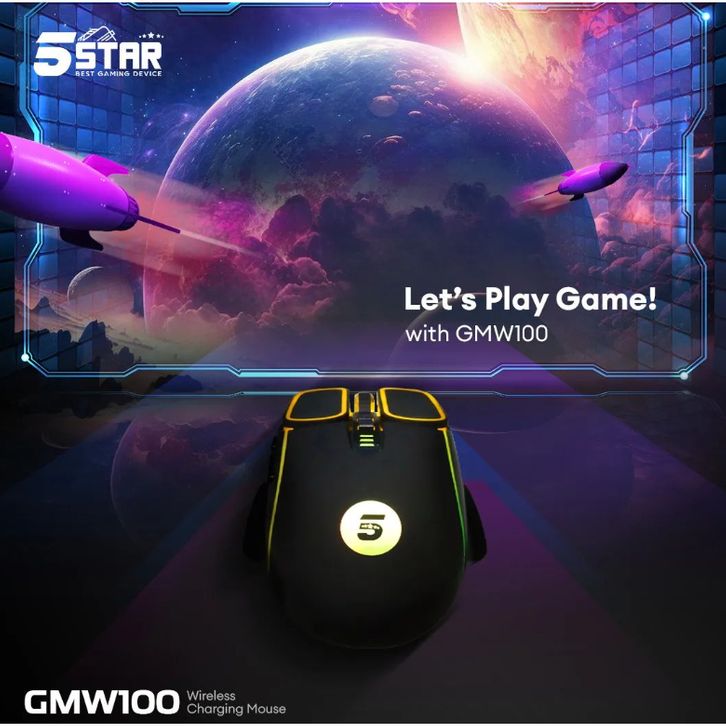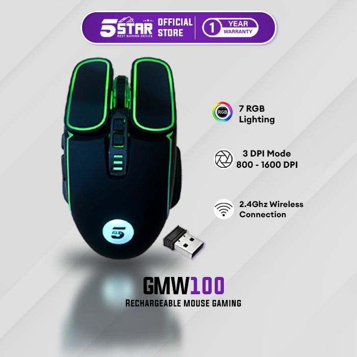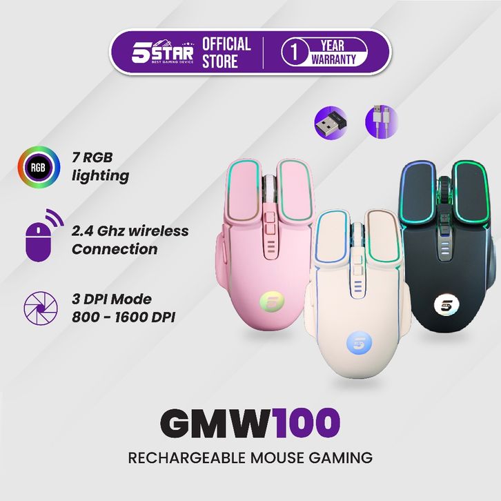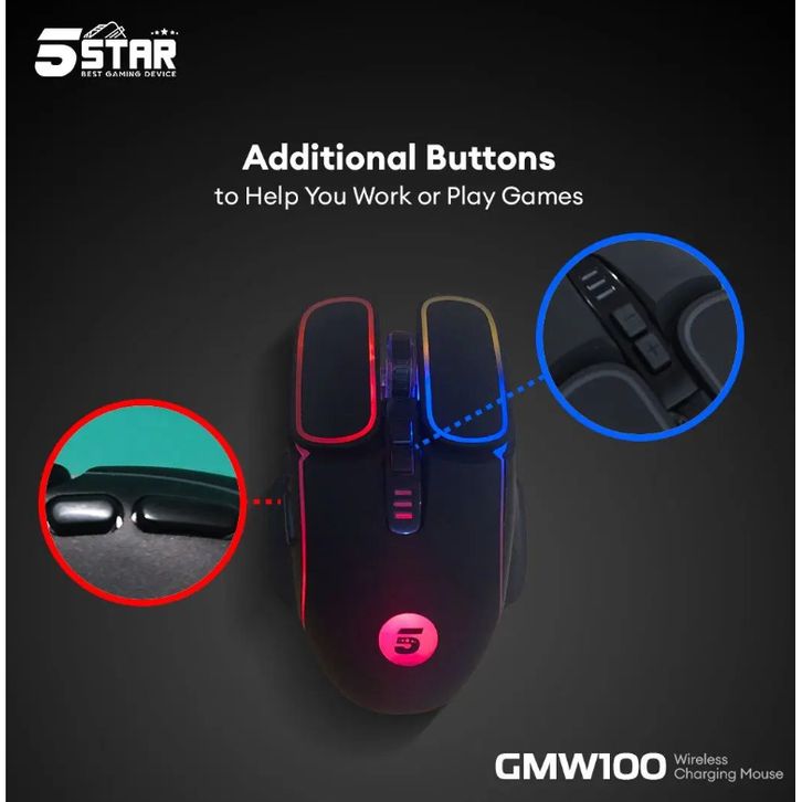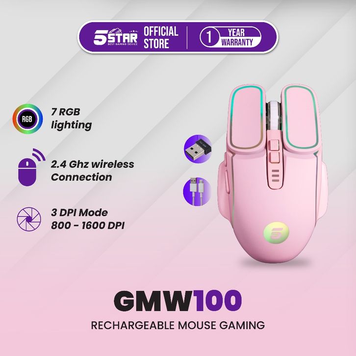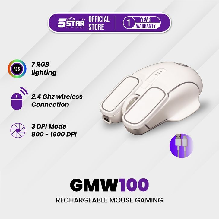 [Star] 5STAR Mouse Wireless Gaming Rechargeable Type-C Fast Charging 1600DPI RGB Light GMW100