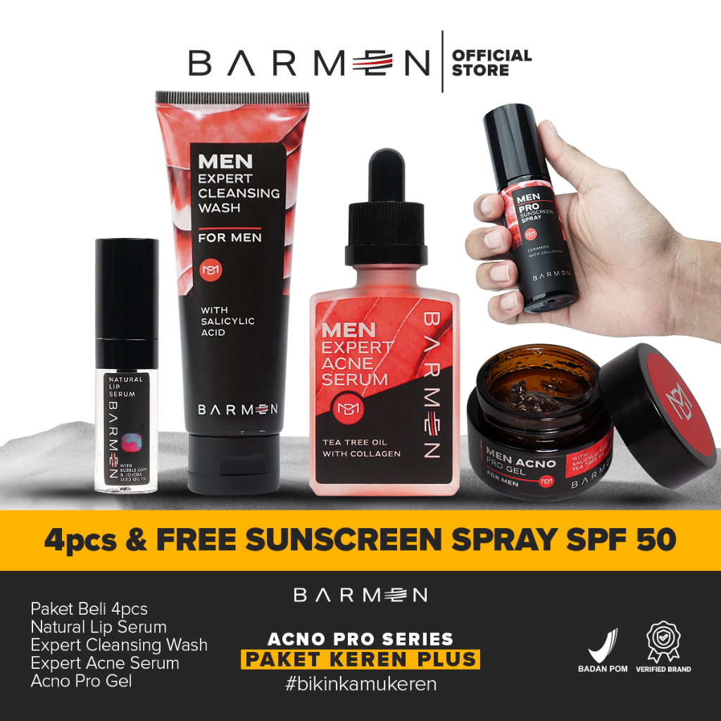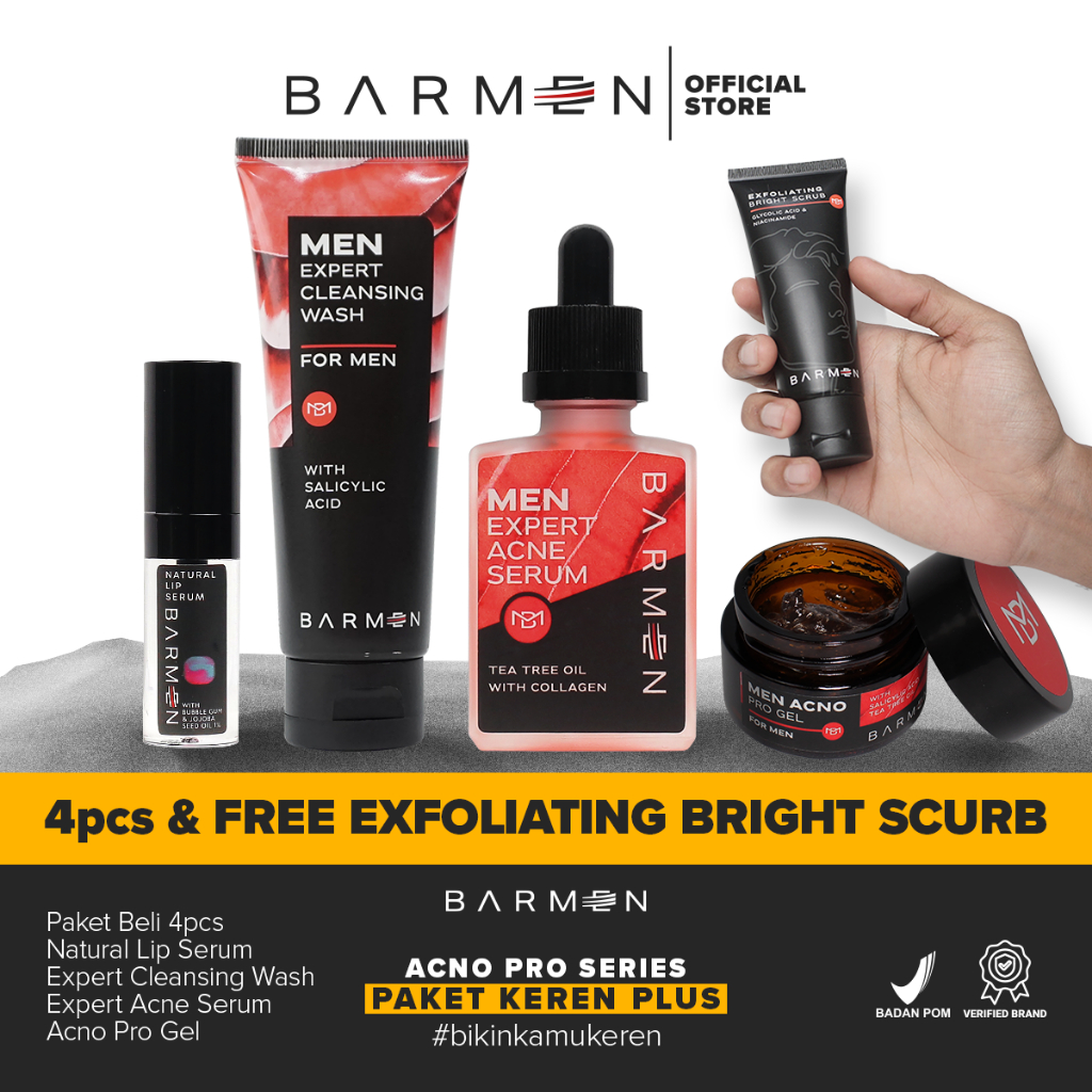BARMEN Paket Keren Plus - Paket Skincare Pria Bebas Jerawat dan Bibir Hitam