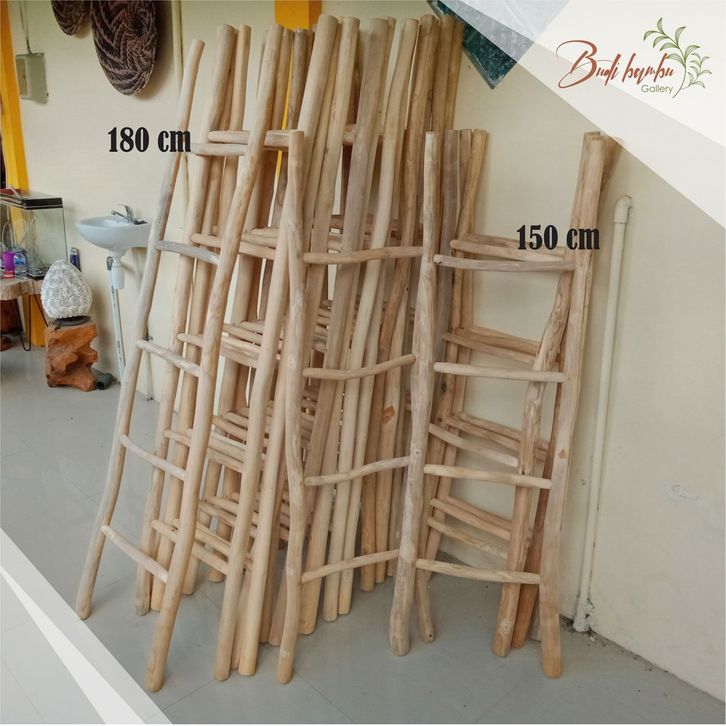 PROMO TANGGA DEKORASI KAYU JATI - TANGGA KAYU JATI 180CM / TEAK WOOD LADDER / TANGGA DEKORATIF ANTIK MURAH