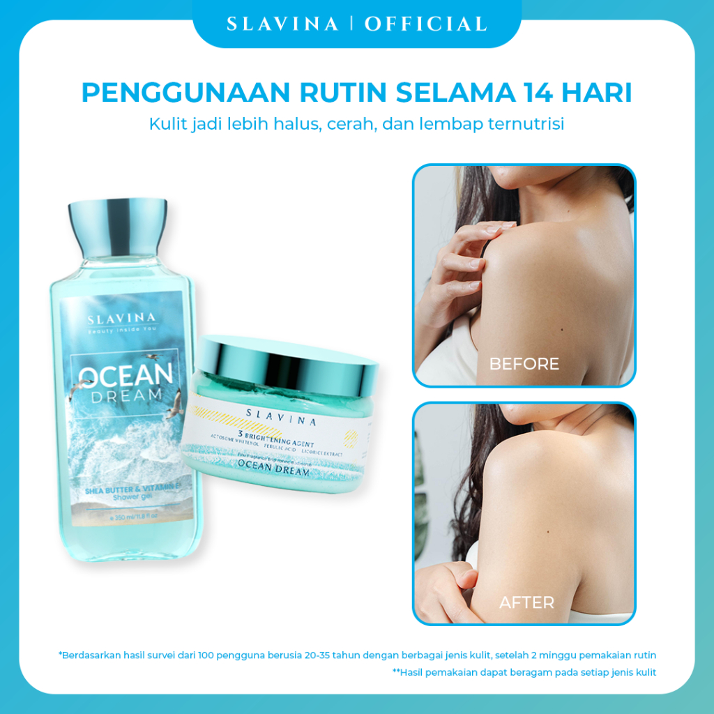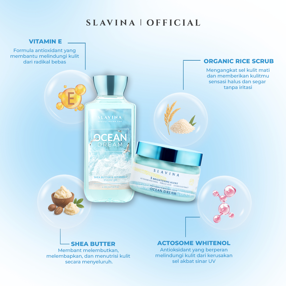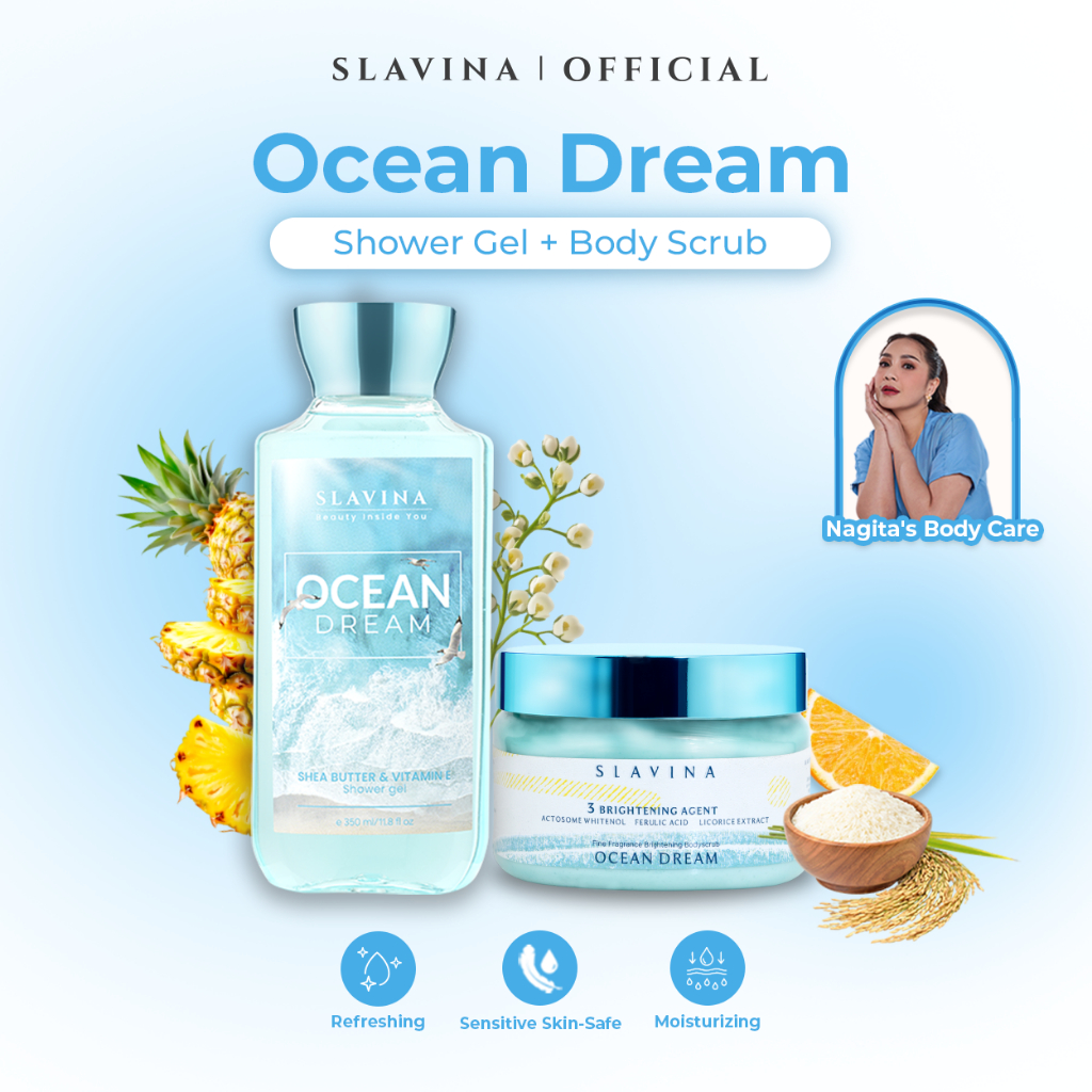 [Mall] SKINCARE SLAVINA Shower Advanced Ocean Dream (Body Scrub +Shower Gel) | sabun cair scrub lulur pencerah kulit