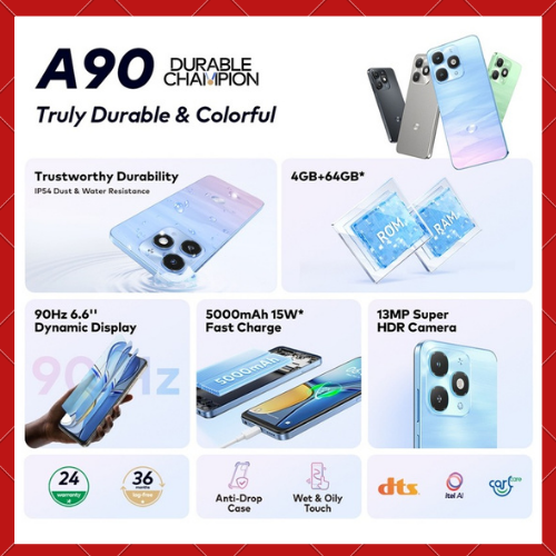 Handphone itel A90 4/256GB – Trustworthy Durability IP54 – 6.6'' 90Hz Display – Octa-core – Octa-Core Processor – 5000m