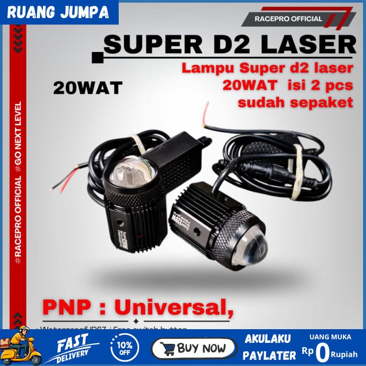 Racepro Super D2 Laser 20wat isi 2 pcs 1 box waterproof IP67 lampu laser d2 racepro lampu tembak d2