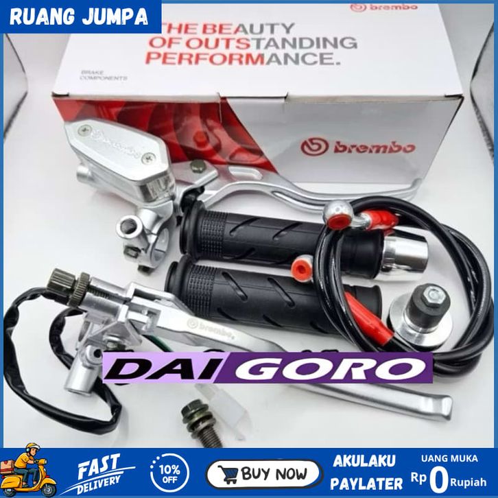[ Paket Murah 4in1 ] Master Rem Oval Silver Plus Selang Rem 95cm Plus Grip Sisik Plus Jalu Stang Pcx Universal Ninja