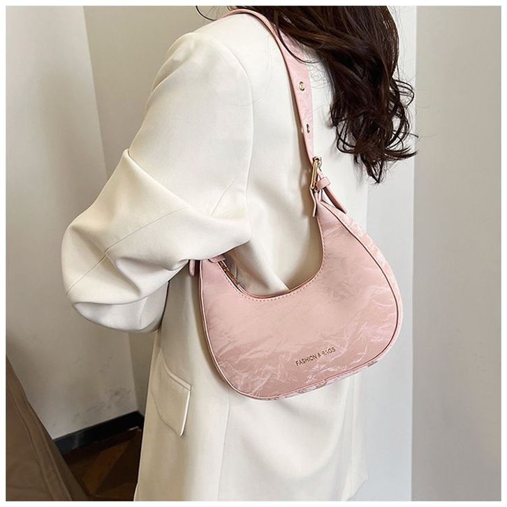 Tas Prancis Wanita Tas Bahu Seratus Tas Tangan Warna Solid Tas Fashion Bulan Sabit