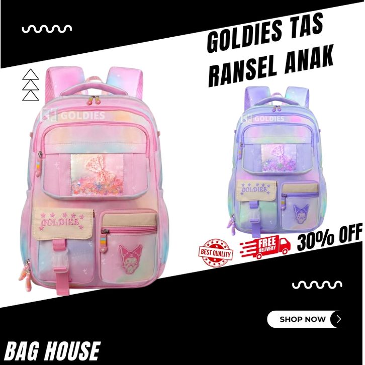 GOLDIES Tas Ransel Anak Sekolah Kuromi Backpack Anak Permpuan Model Kulkas Double Layer G1124 Import